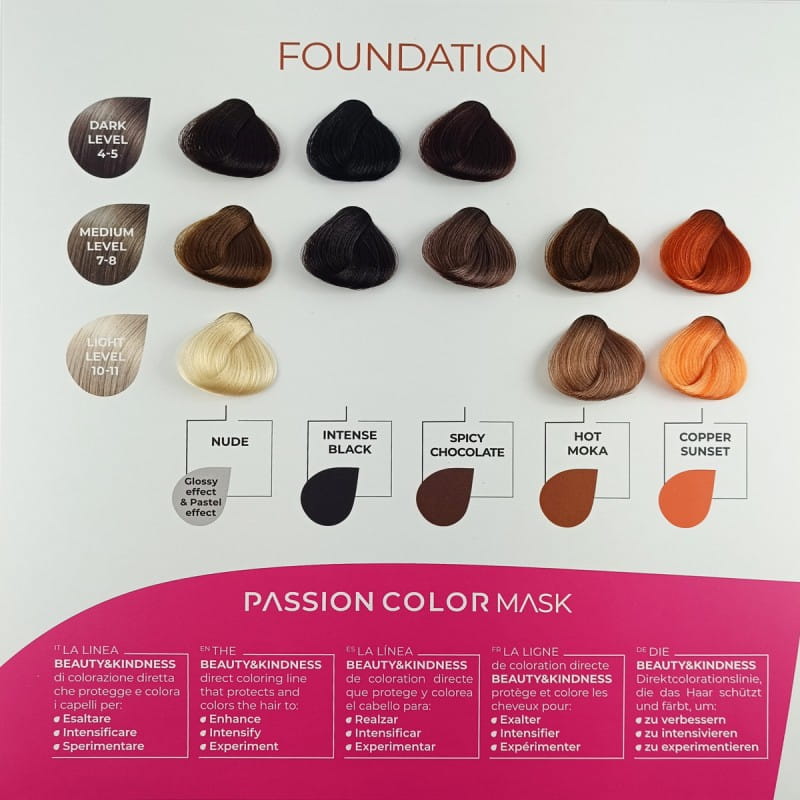 - Passion Color Mask pozwala szybko i łatwo odświeżyć kolor pomiędzy wizytami w salonie i spersonalizować koloryzację pasemek.