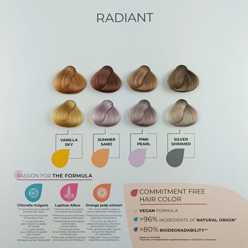 - Odżywczy preparat koloryzujący opracowany, aby upiększyć i rozświetlić włosy naturalne i farbowane.