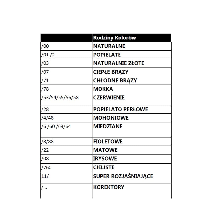 - Wszystkie odcienie zapewniają doskonałe pokrycie, jednolitość i rozjaśnienie włosów, a także większą trwałość koloru.