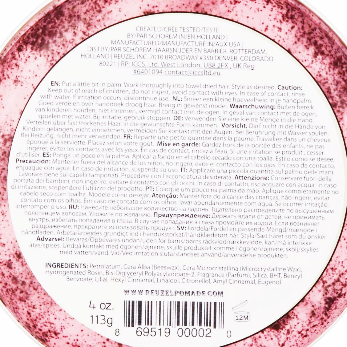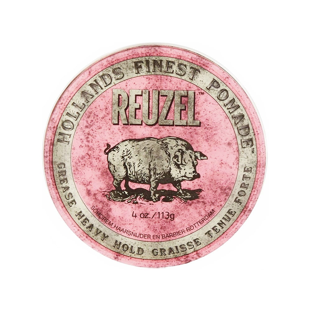 - Reuzel Grease Heavy Hold ta różowa pomada oparta jest na wosku pszczelim, dzięki czemu pozwala na uzyskanie oczekiwanego poziomu połysku oraz nawilżenie i ochronę włosów.