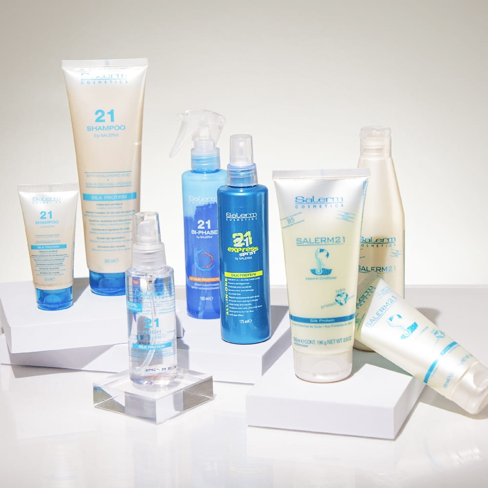 - Salerm 21 Bi-Phase został specjalnie zaprojektowany, aby chronić włókno włosów przed ekspozycją na słońce, chlorem i solą, oraz natychmiast kondycjonując włosy.