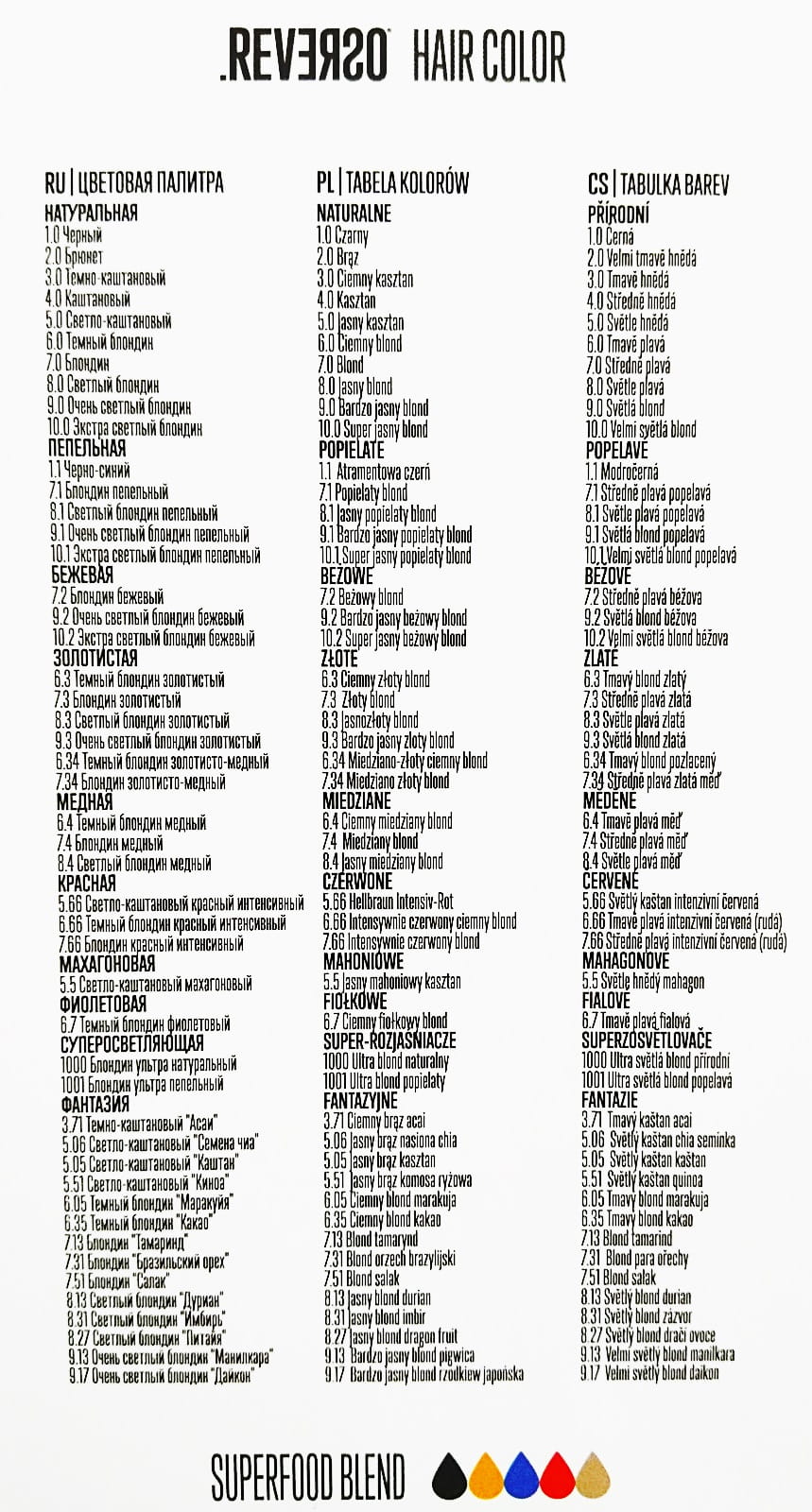 - SUPERFOOD BLEND to wyjątkowa mieszanka wyciskanych na zimno ekstraktów roślinnych, bogatych w substancje odżywcze intensyfikujące kosmetyczne efekty koloryzacji oraz dogłębnie odżywiające włosy.