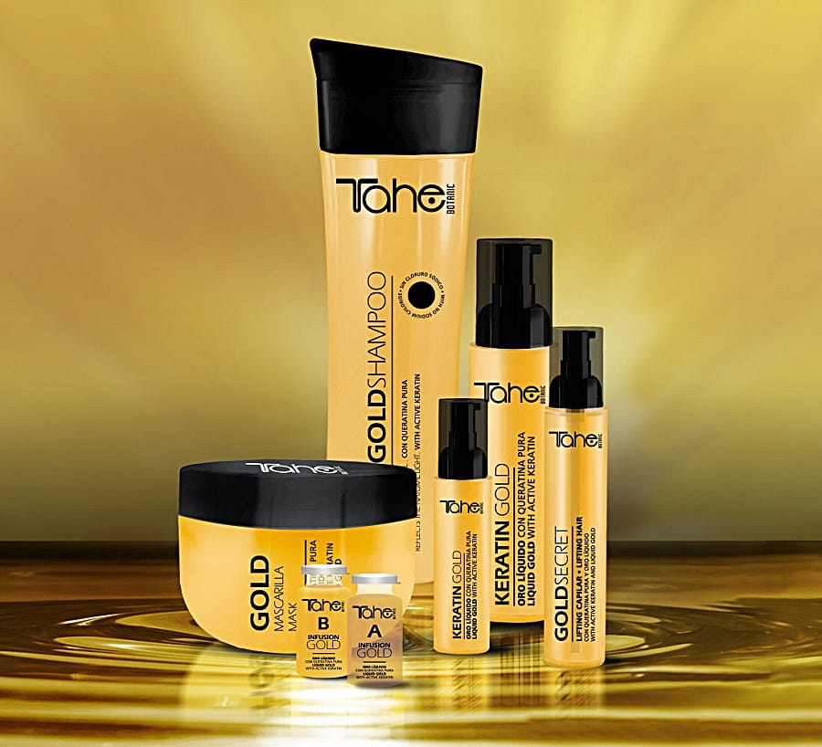 - Tahe Gold Finishing jest to seria kosmetyków nasyconych keratyną oraz płynnym złotem będącym olejkiem z drzewa arganowego. Olejek arganowy ma niesamowicie dobroczynne właściwości dla włosów. Olejek ten wykazuje silne właściwości antyoksydacyjne opóźniając procesy starzenia tkanek, dzięki czemu efekty jego stosowania pojawiają się niemal natychmiast. Płynne złoto wspaniale regeneruje włosy, nawilża, odżywia oraz wygładza pozostawiając je jedwabiście miękkie oraz gładkie.