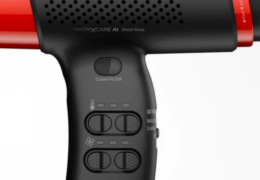 Dla każdej z dwóch konfiguracji rodzaju włosów (Care/Max) zintegrowane diody LED pokazują trzy poziomy temperatury i trzy poziomy prędkości nadmuchu.