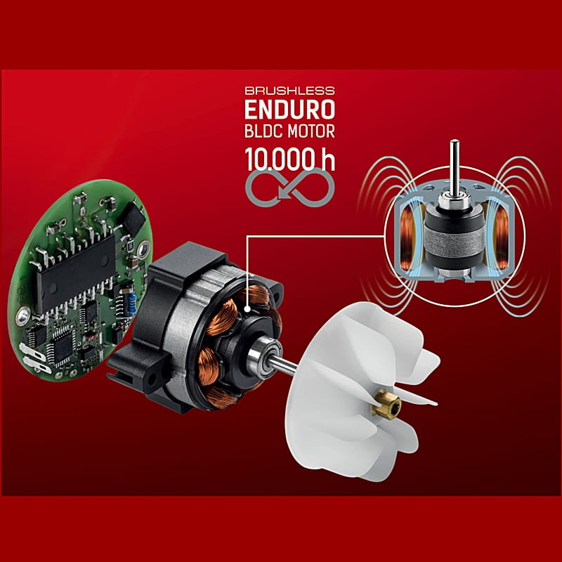- innowacyjny bezszczotkowy silnik ENDURO BRUSHLESS o wytrzymałości 10 000 godzin pracy jest 5 razy wytrzymalszy niż AC-motor oraz jest lżejszy od niego o 30%